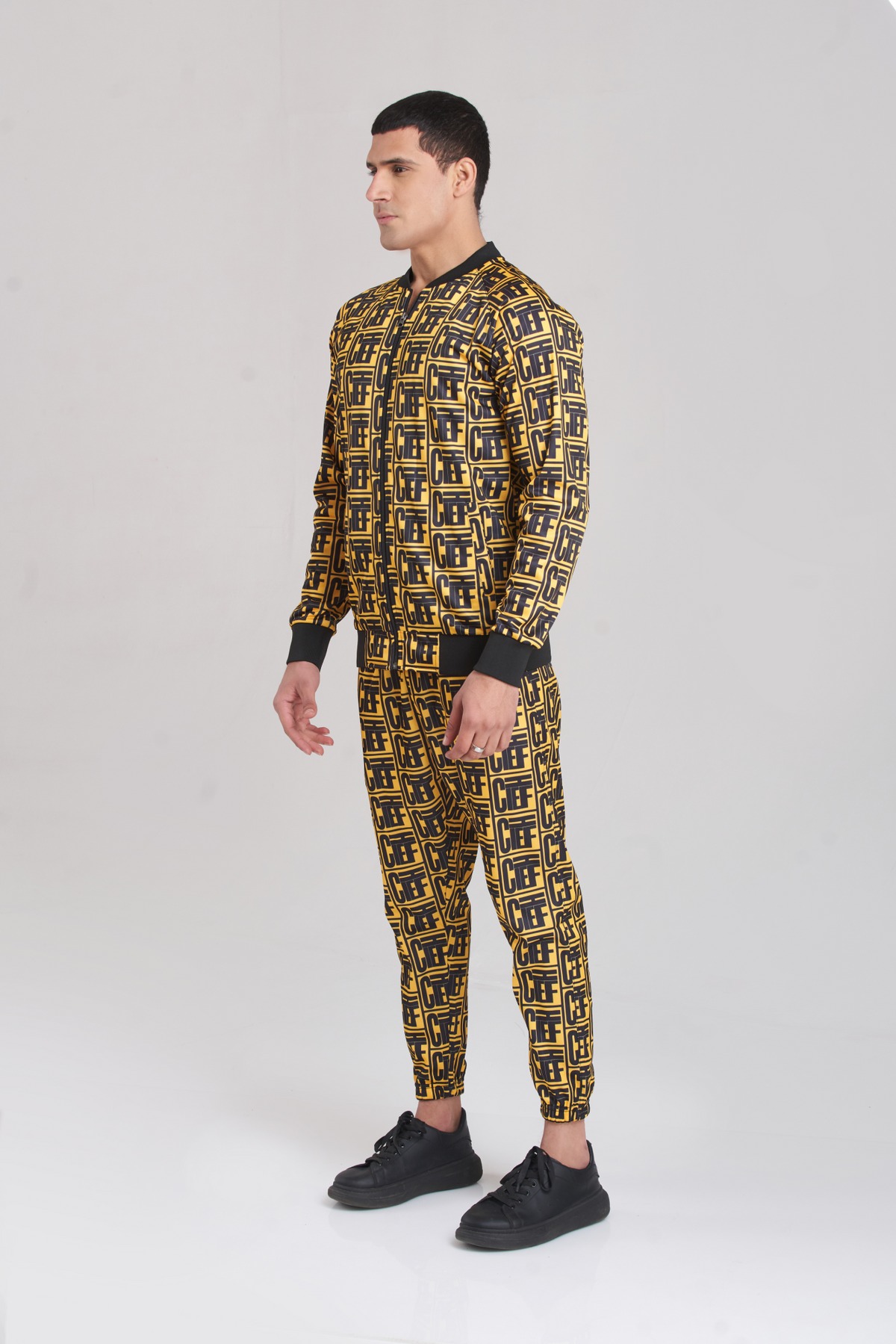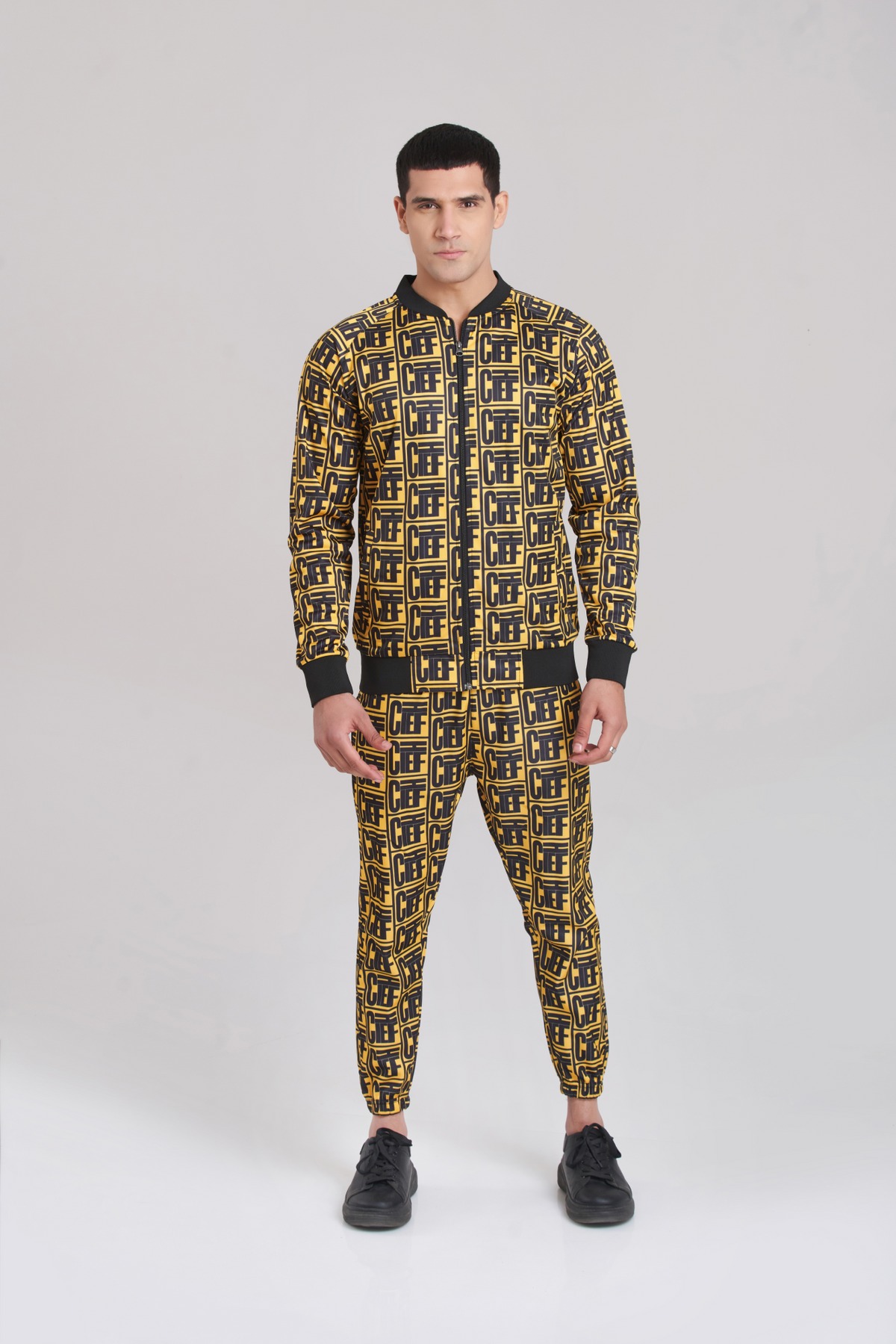Features a standout yellow and black “chief” check pattern that gives the tracksuit a bold, modern flair.