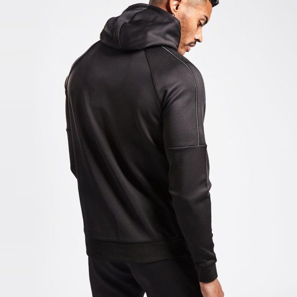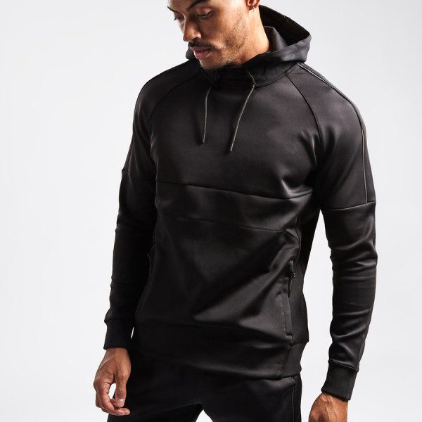 The hoodie features a fitted cut for a clean, modern silhouette; long sleeves with wide ribbed cuffs and hem help lock in warmth while offering stretch and ease of movement. Practical zip-pockets give secure storage for essentials — ideal for active use or everyday wear. The plain black design offers a minimal, timeless look that’s easy to style or customize with logos, colors or branding of your choice.