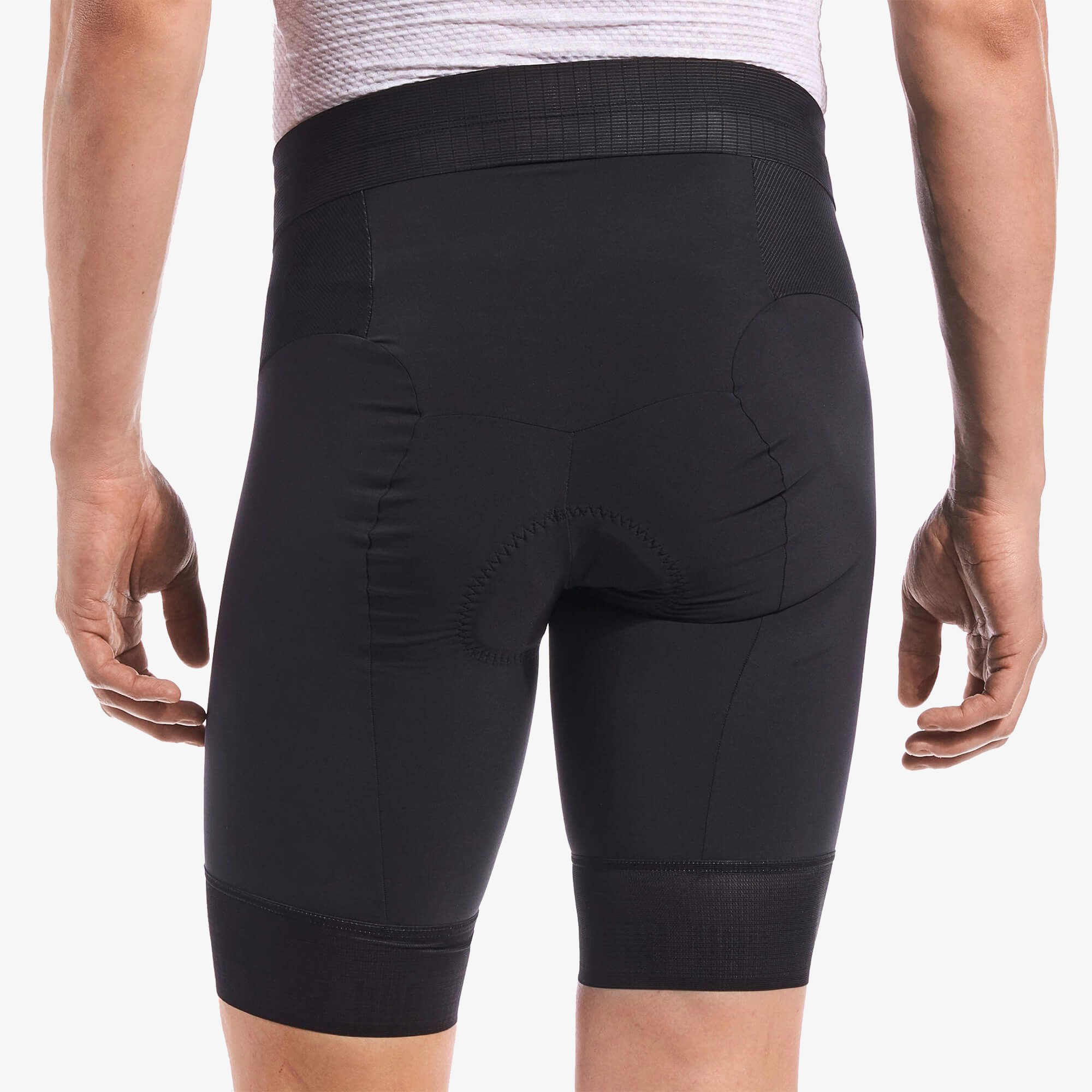The great thing about Giordana’s FR-C (FormaRed-Carbon) Pro Tri Shorts is that not only are they great as part of a team uniform, but they work on their own for swimming, running, and riding, and work so well. You can swim, run, and/or ride in them, whether training or racing, and you’ll feel great wearing them. The legs of the Tri Shorts are fabricated out of two textiles: Gravity Interpower around the legs, and Stay Put for the hems. The Gravity Interpower is a durable, abrasion-resistant Lycra.. Stay Put hems are 7.5cm wide, lined with silicone, and gently but firmly hold the legs in place. These are medium-compression, abrasion-resistant Lycra Power and treated with a Durable Water Repellant (DWR) finish to minimize water and sweat absorption and improve resistance to the effects of chlorine. They won’t feel waterlogged even when getting out of the pool or running on a hot, humid day.