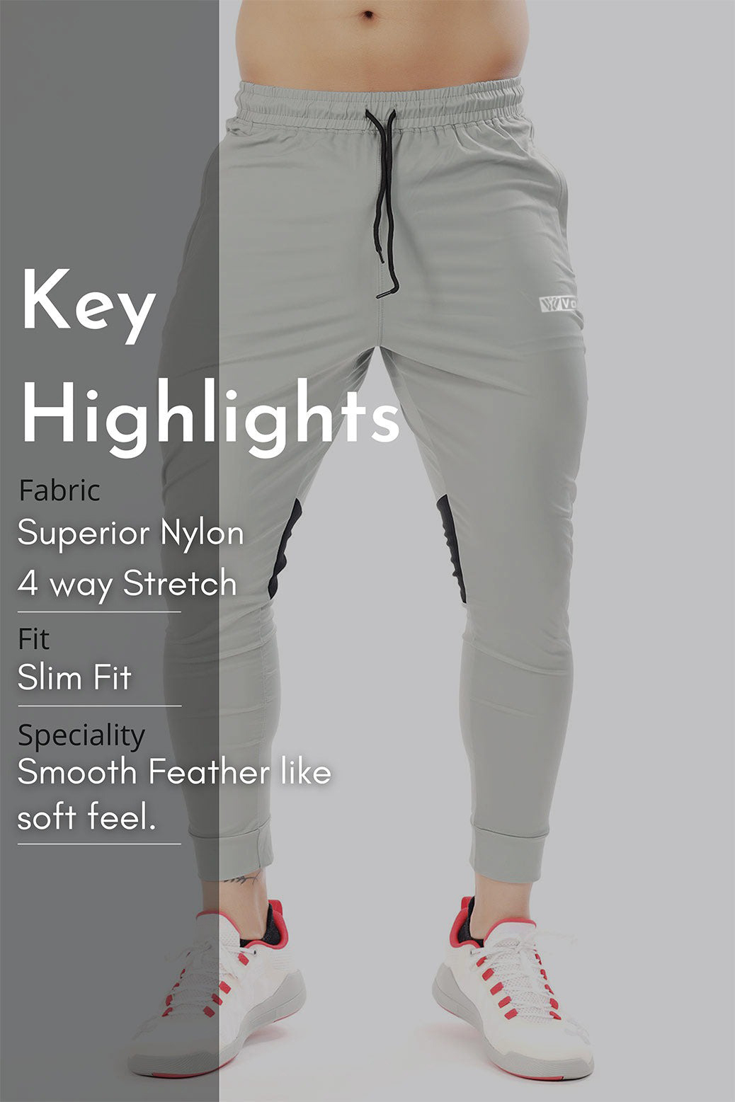 Unleash your movement in style. These gym joggers are crafted from a premium nylon blend that delivers stretch, breathability, and structure all in one package. The tapered cut gives a sharp silhouette without feeling restrictive, and the light grey tone makes them easy to pair with any top or sneaker.