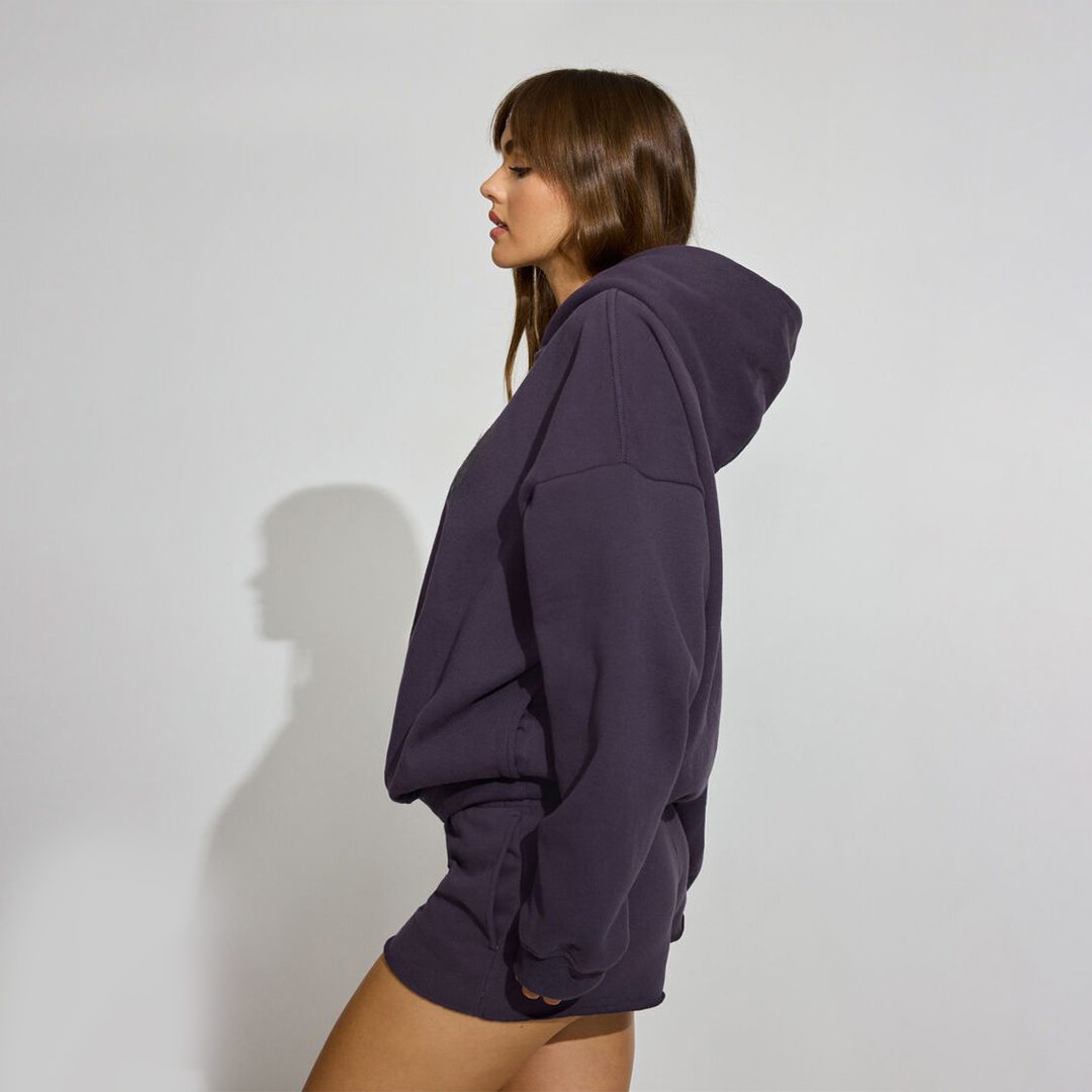 The fit is oversized and long, giving a relaxed silhouette that drapes effortlessly — perfect for a street-style or lounge-wear look. Ribbed cuffs and hem give structure, make the hoodie feel snug around wrists and waist, and help lock in warmth.