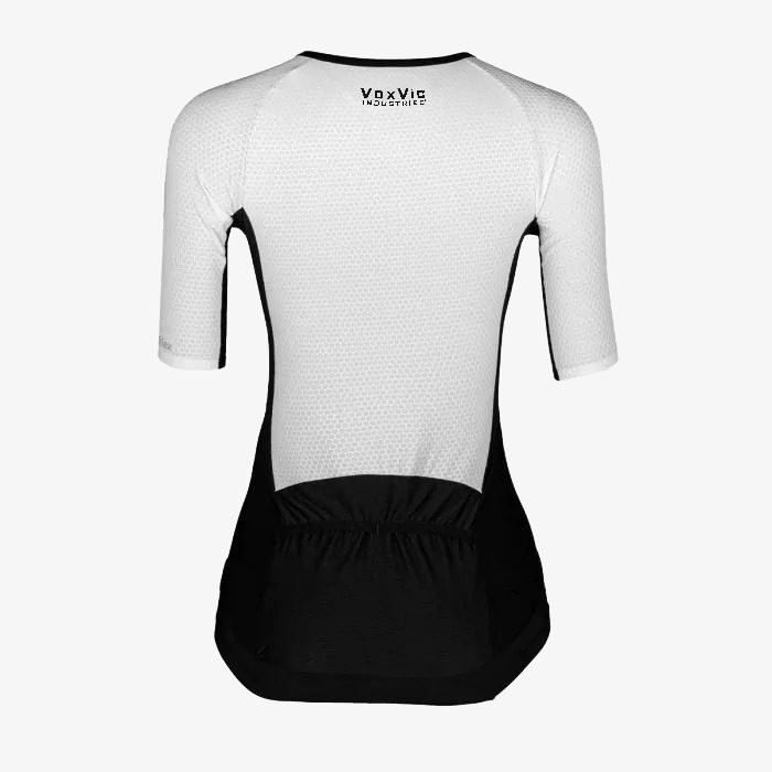 The Aero fabric in the shoulders, arms, and back contributes to aerodynamic performance for cycling, as well as flexibility in the swimming segment.