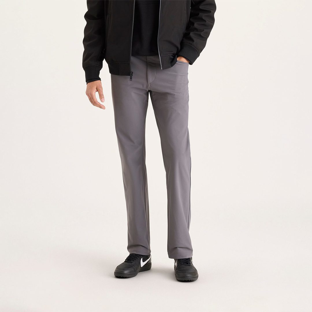The tailored yet relaxed fit pairs effortlessly with button-downs, tees, or polos, making them ideal for casual office environments, travel, or everyday errands. Finished with a zip fly with button closure and sturdy belt loops, these pants balance functional details with a clean, modern look. Available in versatile colorways like Khaki and Black, the Straight Fit Pants are a wardrobe essential for those who value comfort without sacrificing style