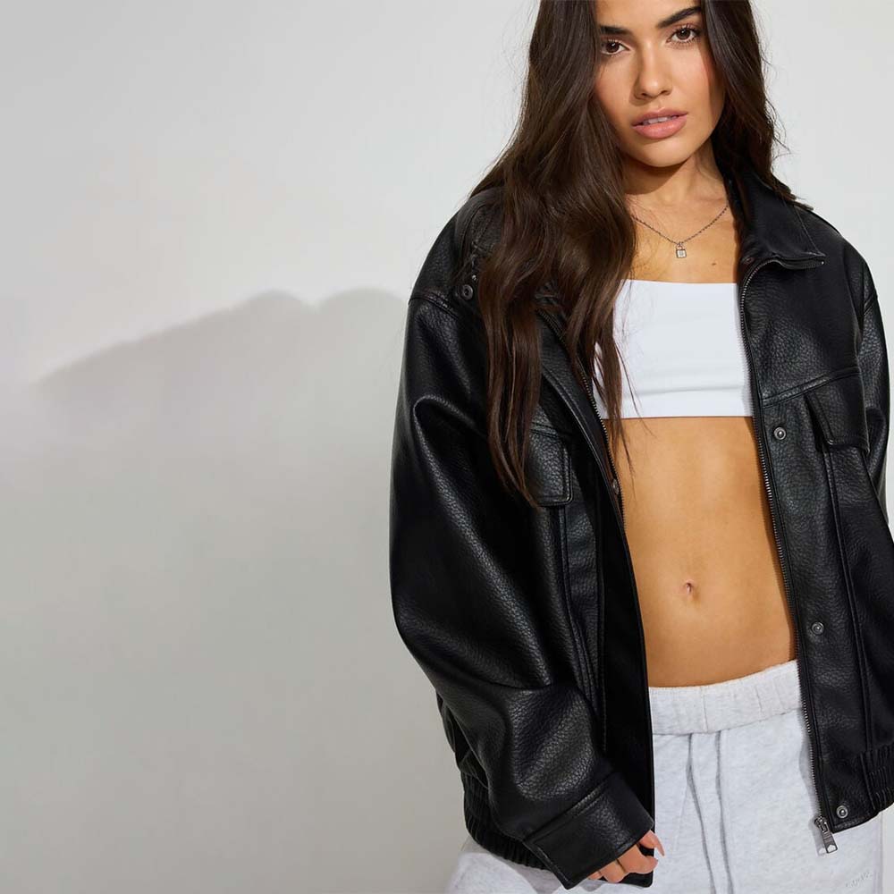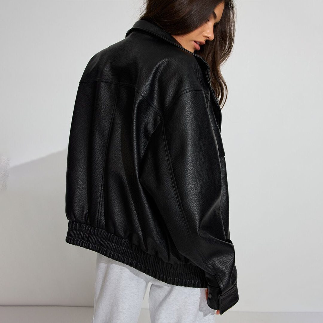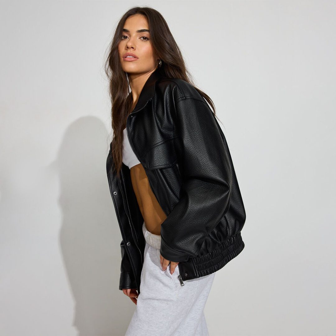 With its oversized cut, this bomber offers a relaxed, streetwear‑inspired vibe — perfect for layering over casual outfits, jeans, or athleisure wear. It’s a great pick for anyone wanting a bold, edgy outerwear piece that mixes style and practicality.